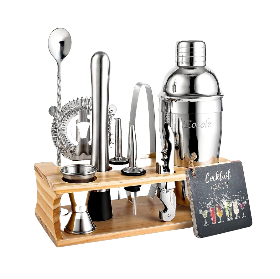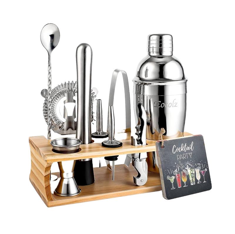 Our Cocktail Shaker Kit is a comprehensive set designed for cocktail enthusiasts and professional bartenders alike. Crafted from premium food-grade 304 stainless steel, each tool in this kit exudes elegance and durability.